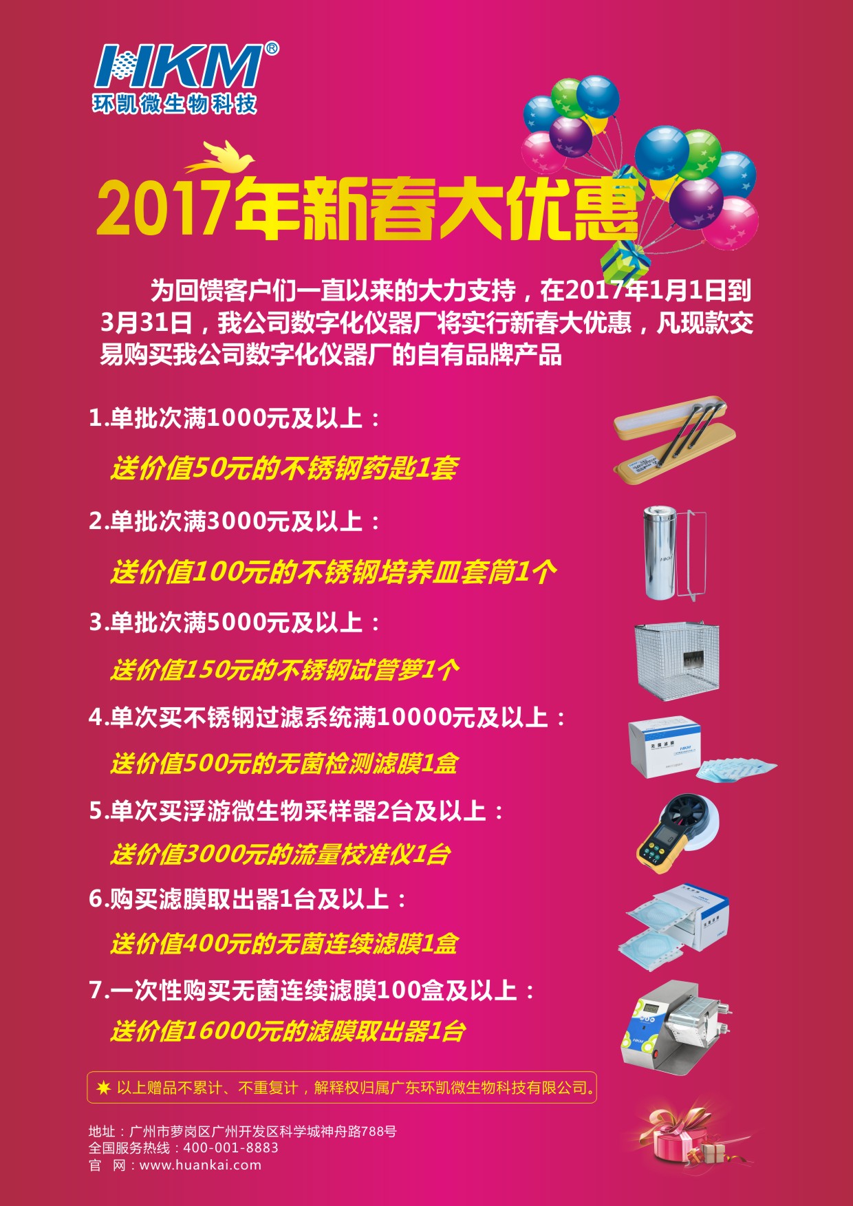 為回饋廣大客戶一直以來對環(huán)凱公司的大力支持,2017年1月1日到3月31日,我公司數(shù)字化儀器廠將舉行新春大優(yōu)惠活動