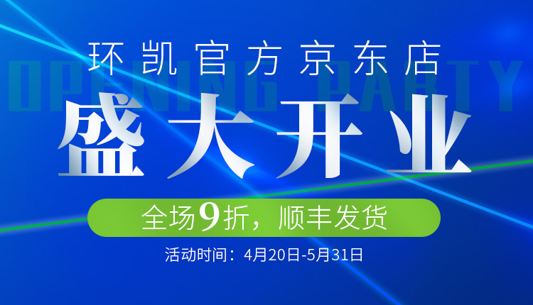 環(huán)凱官方京東店盛大開業(yè),全場九折,活動時間:4月20日-5月31日。