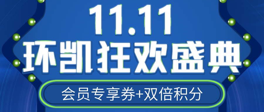 環(huán)凱淘寶官方店雙十一?鉅惠,會(huì)員尊享雙倍積分、積分換禮、滿減優(yōu)惠等一大波優(yōu)惠活動(dòng)開啟。