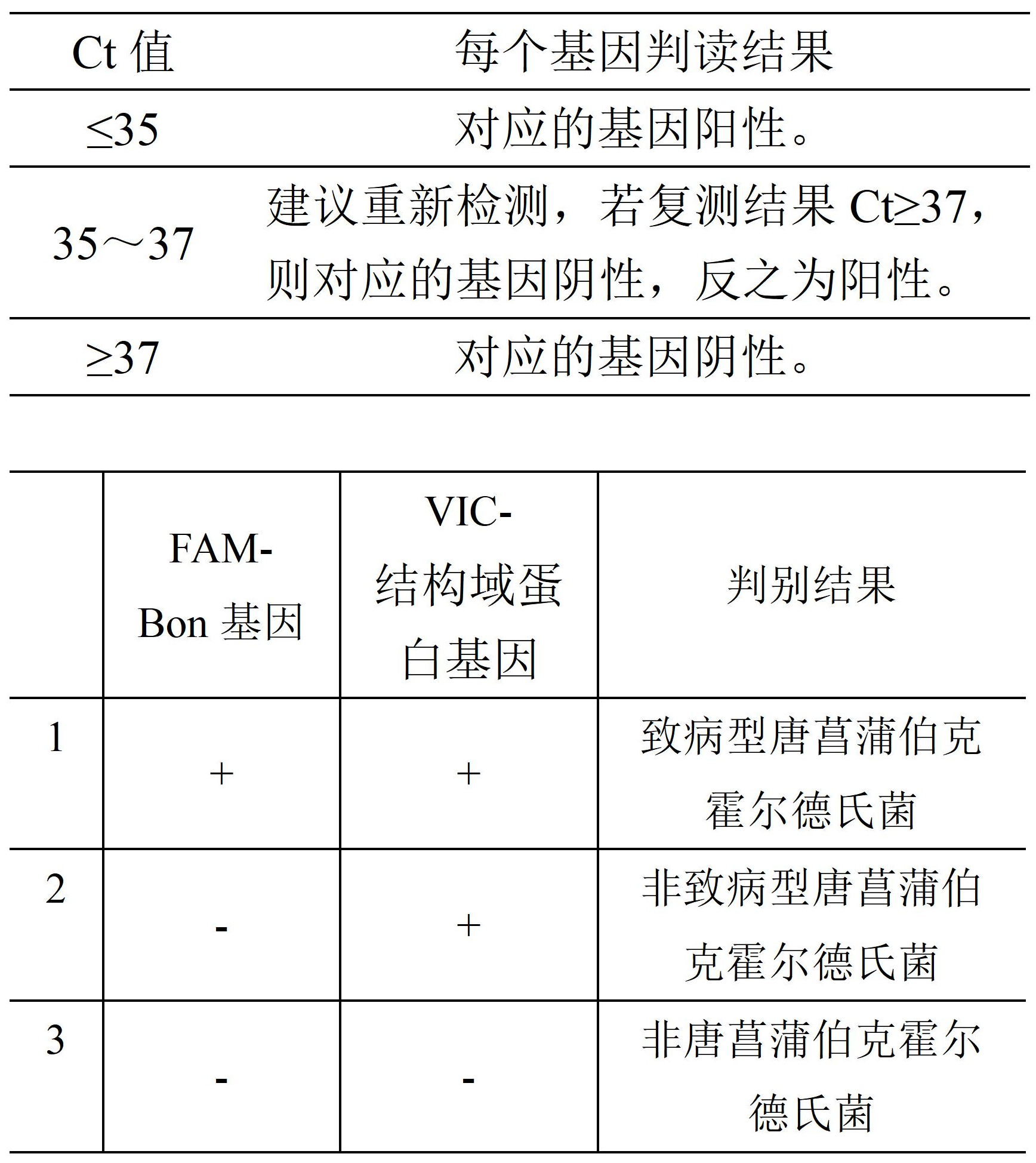 2) 結(jié)果判讀:(根據(jù)反應(yīng)所得Ct值判讀,具體見下表:)