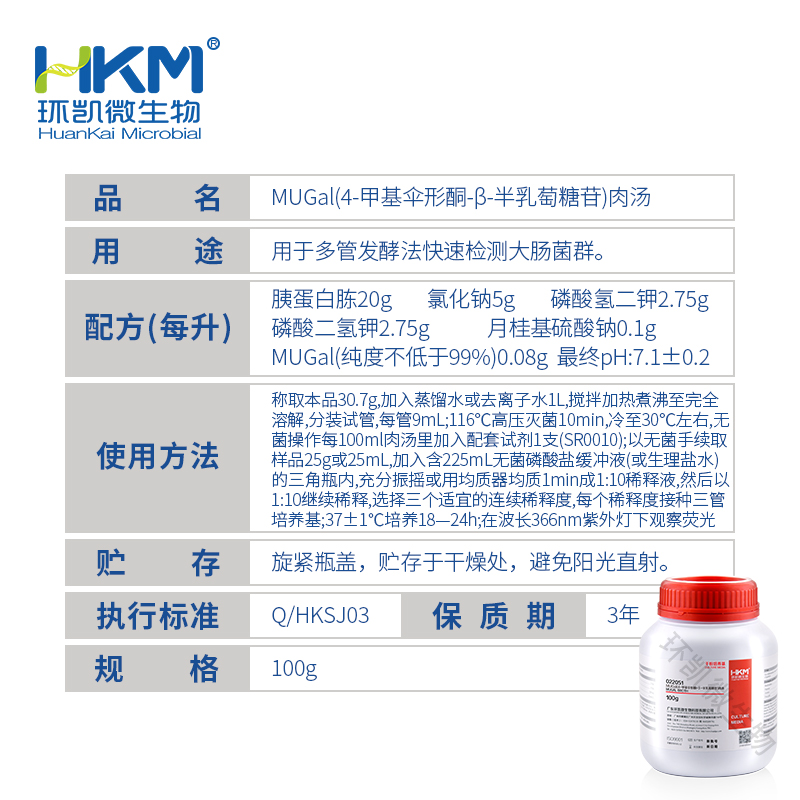 產(chǎn)品名稱:MUGal(4-甲基傘形酮-β-半乳萄糖苷)肉湯