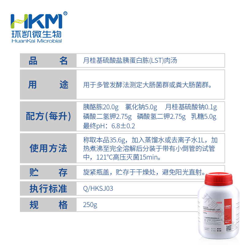 產(chǎn)品名稱:月桂基硫酸鹽胰蛋白胨肉湯(LST)