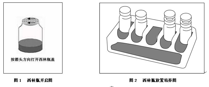 開啟西林瓶前,用75%酒精棉消毒西林瓶表面,在無菌條件下,按鋁蓋上的箭頭方向打開鋁蓋,撕開鋁蓋,打開西林瓶膠塞(如圖1)所有的西林瓶在使用后均高壓滅菌后方可棄去。