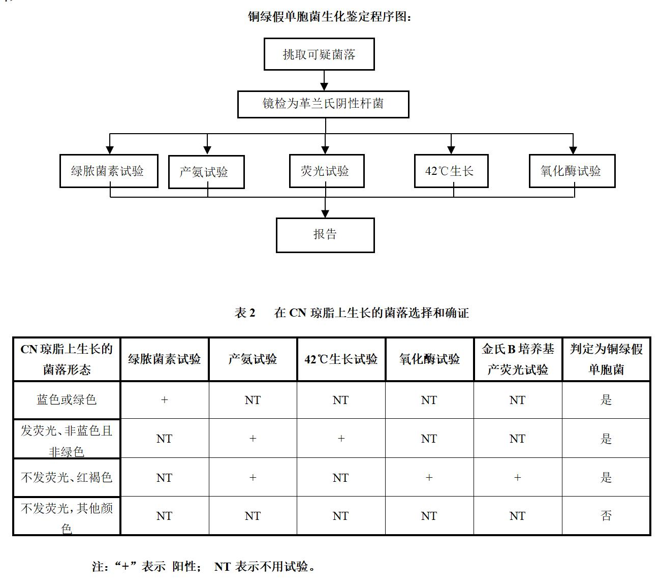 三)銅綠假單胞菌的生化鑒定程序(見下圖)和生化鑒定特征(見表2)