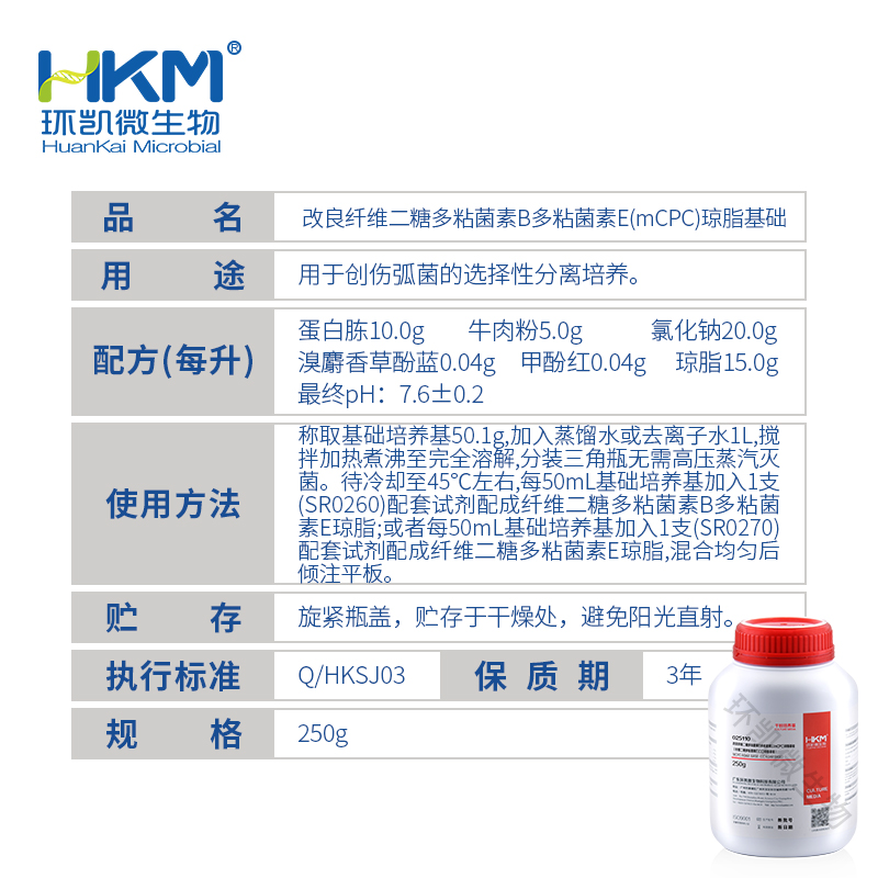 產(chǎn)品名稱:改良纖維二糖多粘菌素B多粘菌素E(mCPC)瓊脂/纖維二糖多粘菌素E(CC)瓊脂