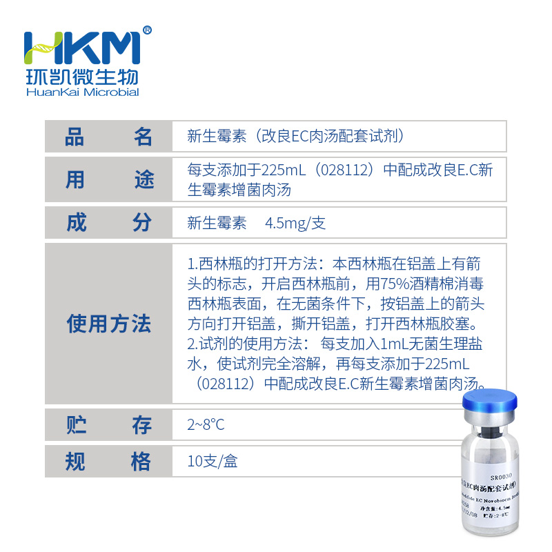 產(chǎn)品名稱:新生霉素(改良EC肉湯配套試劑)
