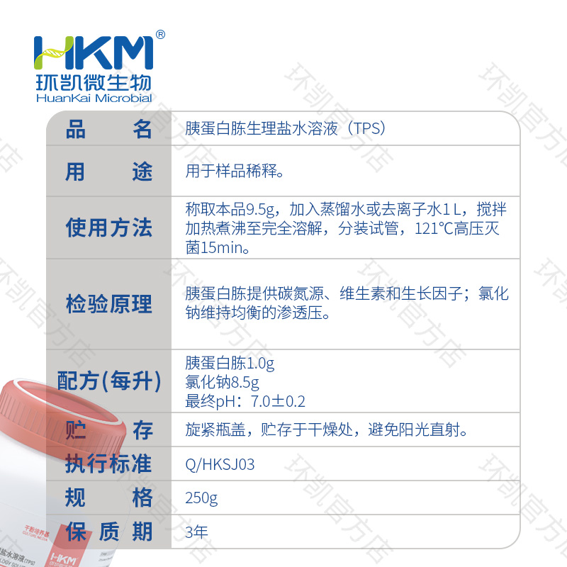 產(chǎn)品名稱:胰蛋白胨生理鹽水溶液(TPS)