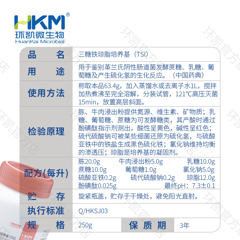 產(chǎn)品名稱:三糖鐵瓊脂培養(yǎng)基(TSI)(20版藥典)