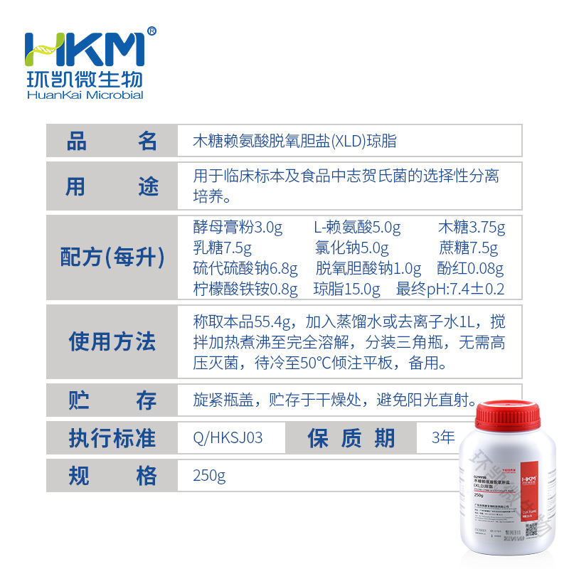 產(chǎn)品名稱:木糖賴氨酸脫氧膽鹽(XLD)瓊脂(GB志賀菌)