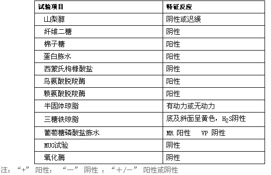 四)出血性大腸桿菌O157:H7的生化鑒定程序(見下圖)和生化鑒定特征(見表2)