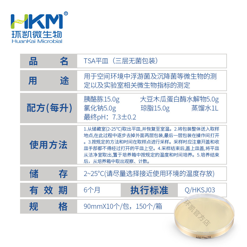 環(huán)凱 TSA平皿(胰酪大豆胨瓊脂培養(yǎng)基)生產(chǎn)信息: