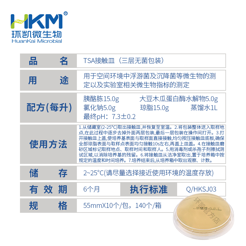 產(chǎn)品名稱:TSA(55mm)接觸皿(三層無菌包裝)