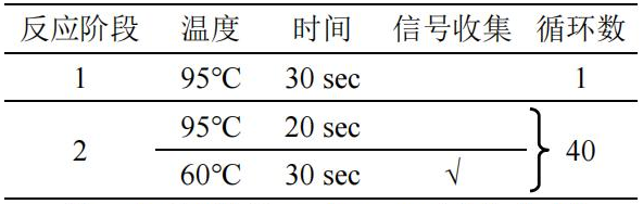3) PCR 反應(yīng)體系為 25 μL,取 FAM、VIC、Cy5 檢測(cè)通道,在反應(yīng)階段 2 中 60℃時(shí)收集熒光信號(hào),具體程序如下: