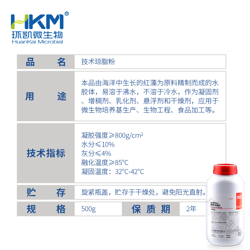 產(chǎn)品用途:本品由海洋中生長的紅藻為原料精制而成的水膠體,易溶于沸水,不溶于冷水,作為凝固劑、增稠劑、乳化劑、懸浮劑和干燥劑,應(yīng)用于微生物培養(yǎng)基生產(chǎn)、生物工程、食品加工等。
