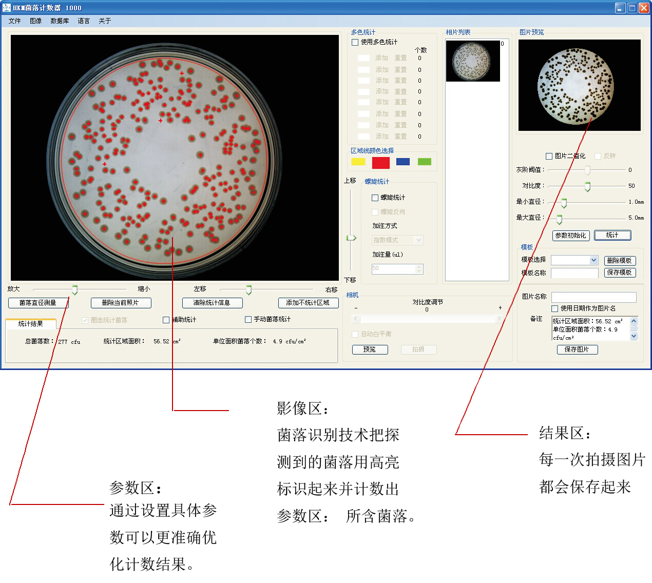 10)可人工添加、刪除菌落,對(duì)設(shè)備的統(tǒng)計(jì)結(jié)果進(jìn)行修正。