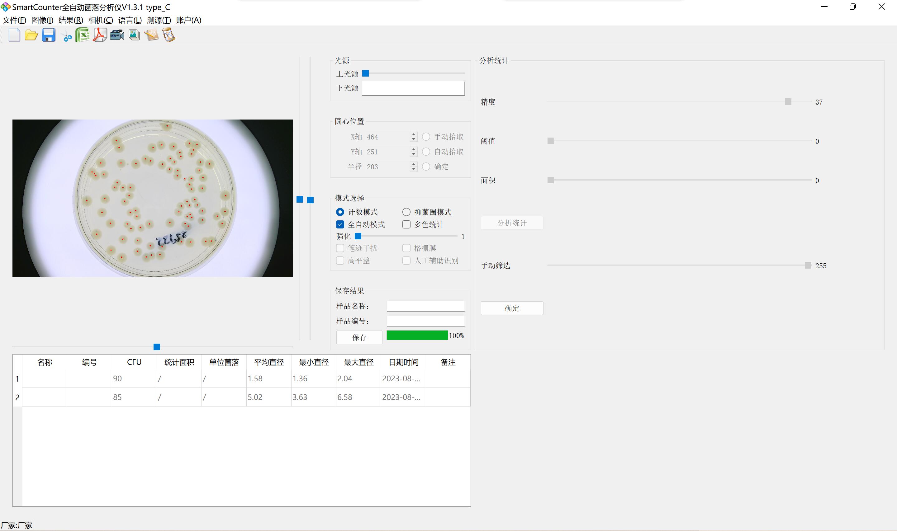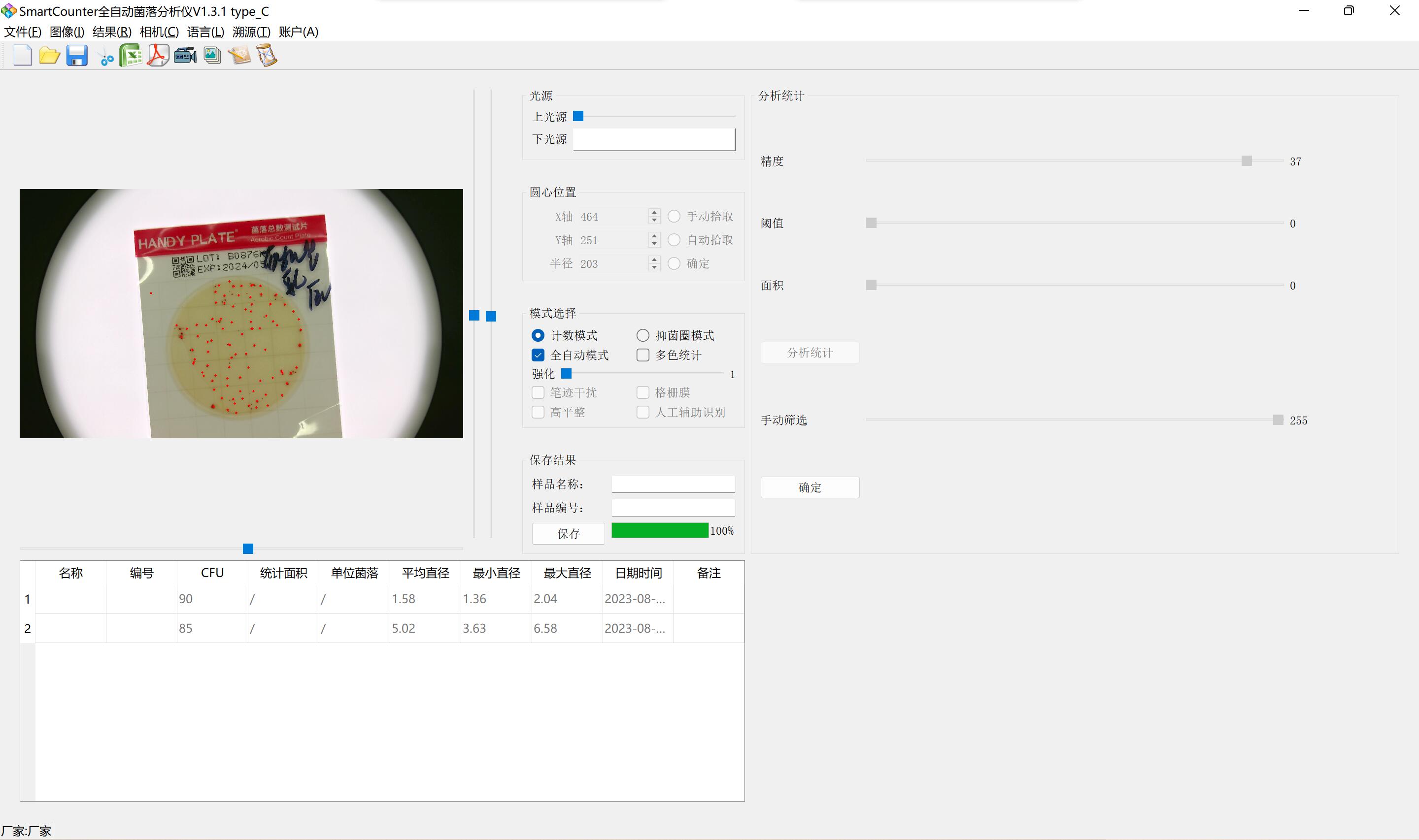 6)可通過(guò)設(shè)置顏色適應(yīng)、菌落比、菌落直徑設(shè)置,提高計(jì)數(shù)精確度。