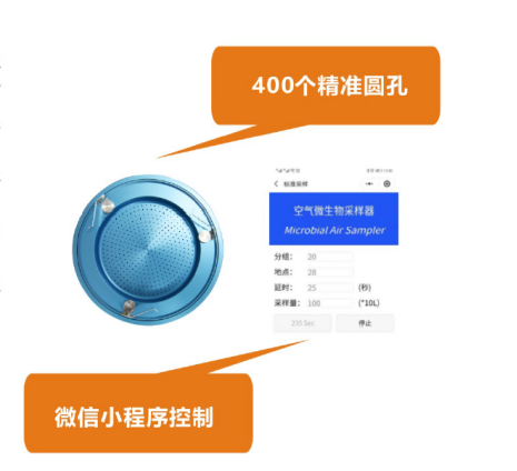 2)可靠的空氣采樣設計,每層采樣頭多達400個微孔,使所采集到的微生物可均勻分布在培養(yǎng)基表面,減少了塵菌重疊,提高準確率;