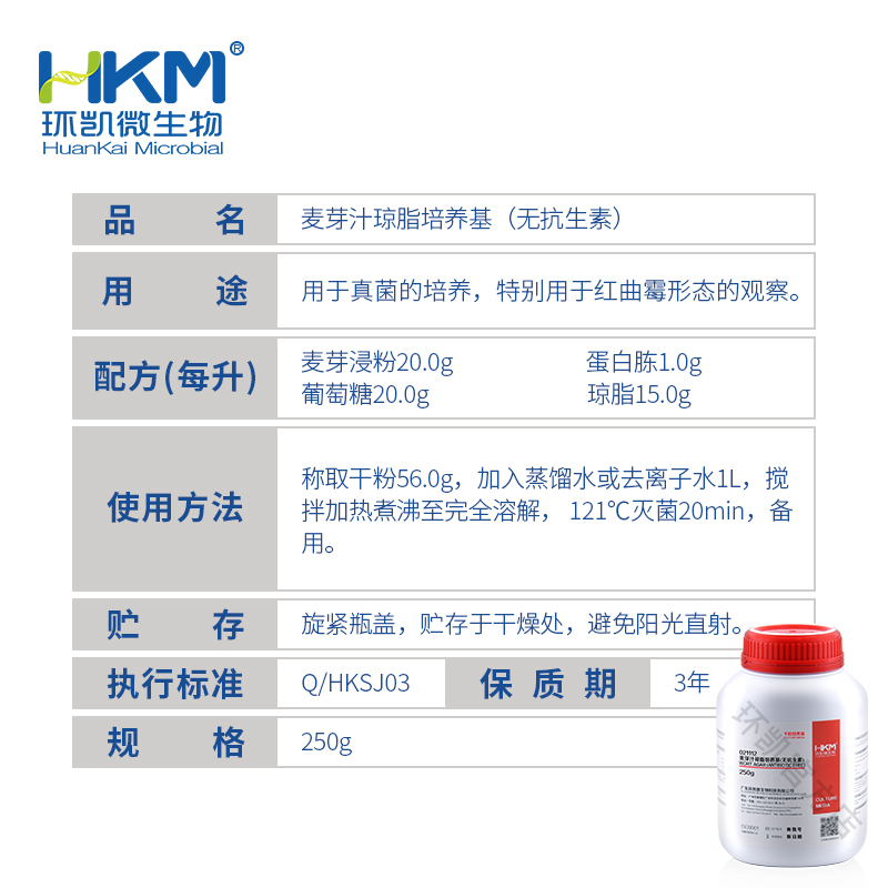 產品名稱:麥芽汁瓊脂培養(yǎng)基(無抗生素)