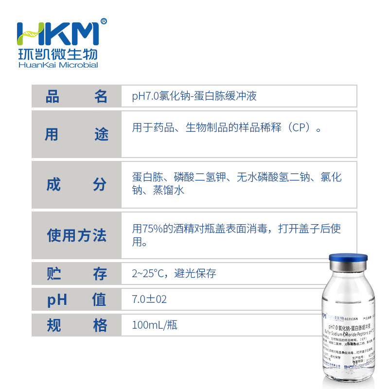 產(chǎn)品名稱:pH7.0氯化鈉-蛋白胨緩沖液