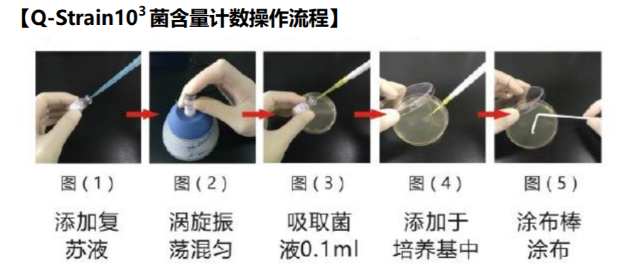 【使用方法】 1.Q-Strain10 3系列 含菌量為 110-1100cfu/瓶 在塑料盒中取出凍干菌粉瓶,往凍干菌粉里添加 1.1mL 復(fù)蘇液,振蕩 5s, 以便充分溶解 并形成均勻的菌懸液,此時(shí)每 0.1mL 含菌量為 10-100cfu,參考 Q-Strain 10 3菌含量計(jì)數(shù)操 作流程。