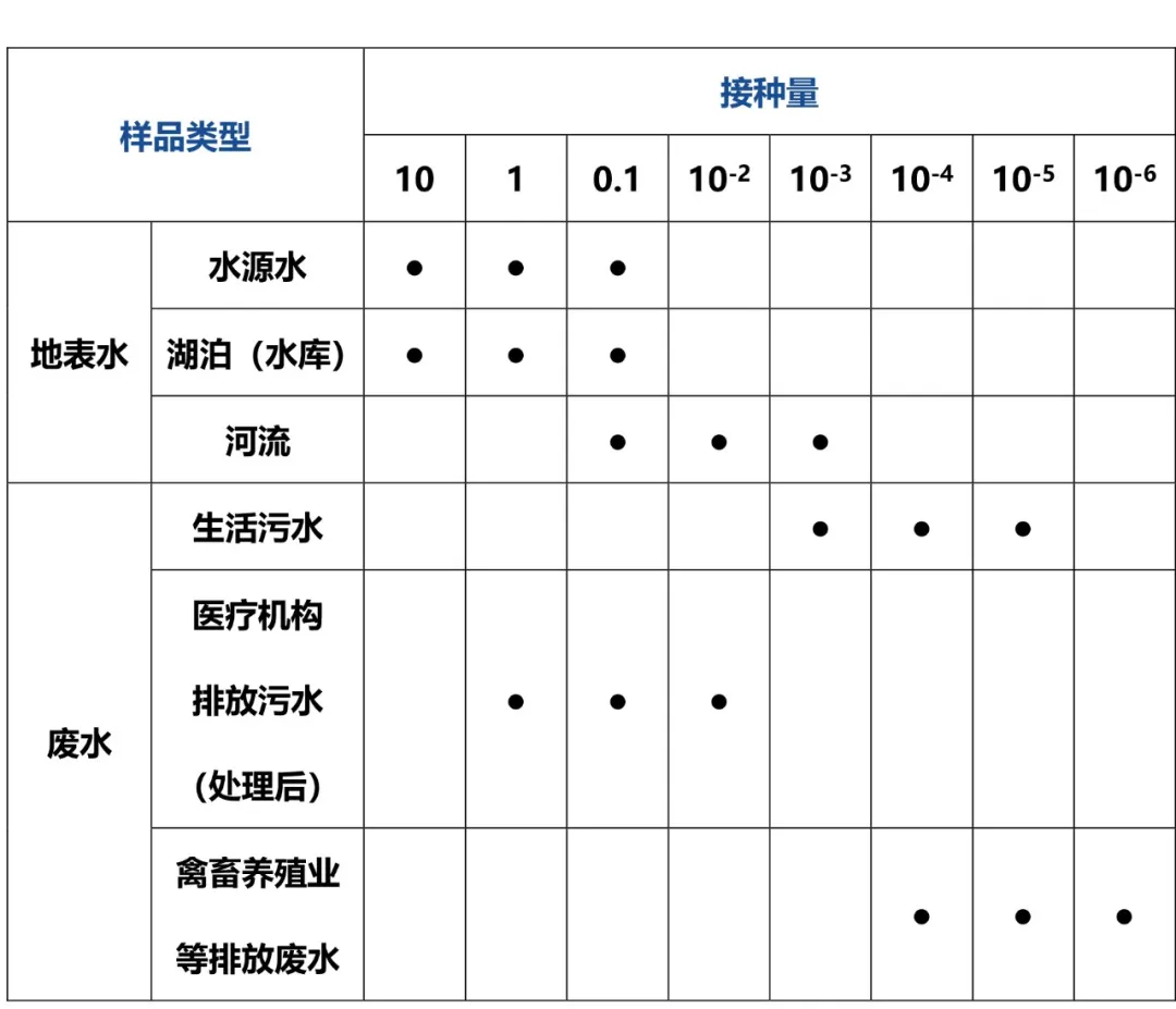 此標(biāo)準(zhǔn)中對(duì)生活污水和醫(yī)療機(jī)構(gòu)排放污水(處理后)的檢驗(yàn)做了相應(yīng)的檢驗(yàn)量推薦,其中一個(gè)樣品接種3個(gè)濃度梯度,每個(gè)濃度梯度接種5張紙片,對(duì)應(yīng)的產(chǎn)品為060030 大腸菌群檢驗(yàn)紙片-I (15袋/份×10)。