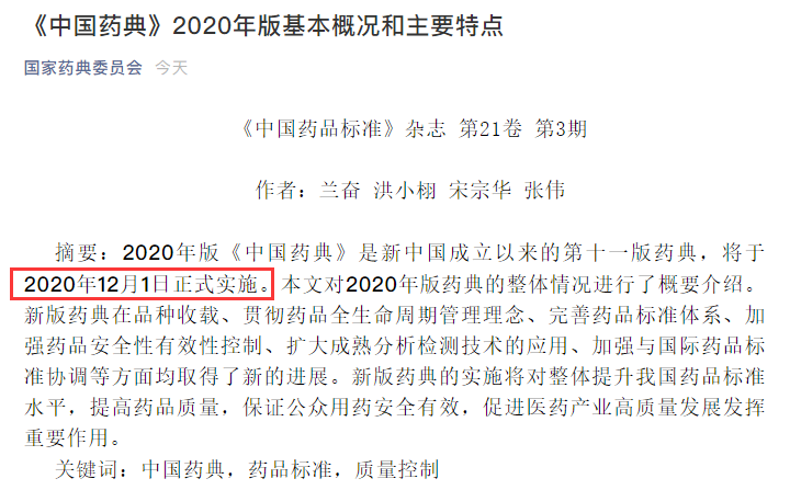關鍵詞:中國藥典,藥品標準,質(zhì)量控制