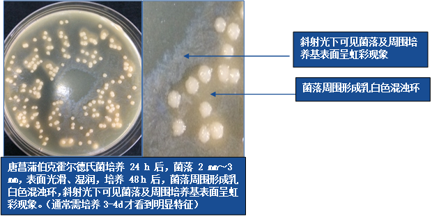 自選擇性瓊脂平板上分別挑取5個以上典型或可疑菌落,分區(qū)劃線卵黃瓊脂平板,36℃±1℃培養(yǎng)。挑取培養(yǎng)18~24 h的菌落進(jìn)行革蘭氏染色及氧化酶試驗。對于革蘭氏染色陰性、氧化酶試驗陰性的菌繼續(xù)培養(yǎng)至48 h±2 h,對于卵磷脂酶陽性,帶有虹彩環(huán)的單個菌落,接種PDA平板,36℃±1℃培養(yǎng)24 h±2 h。