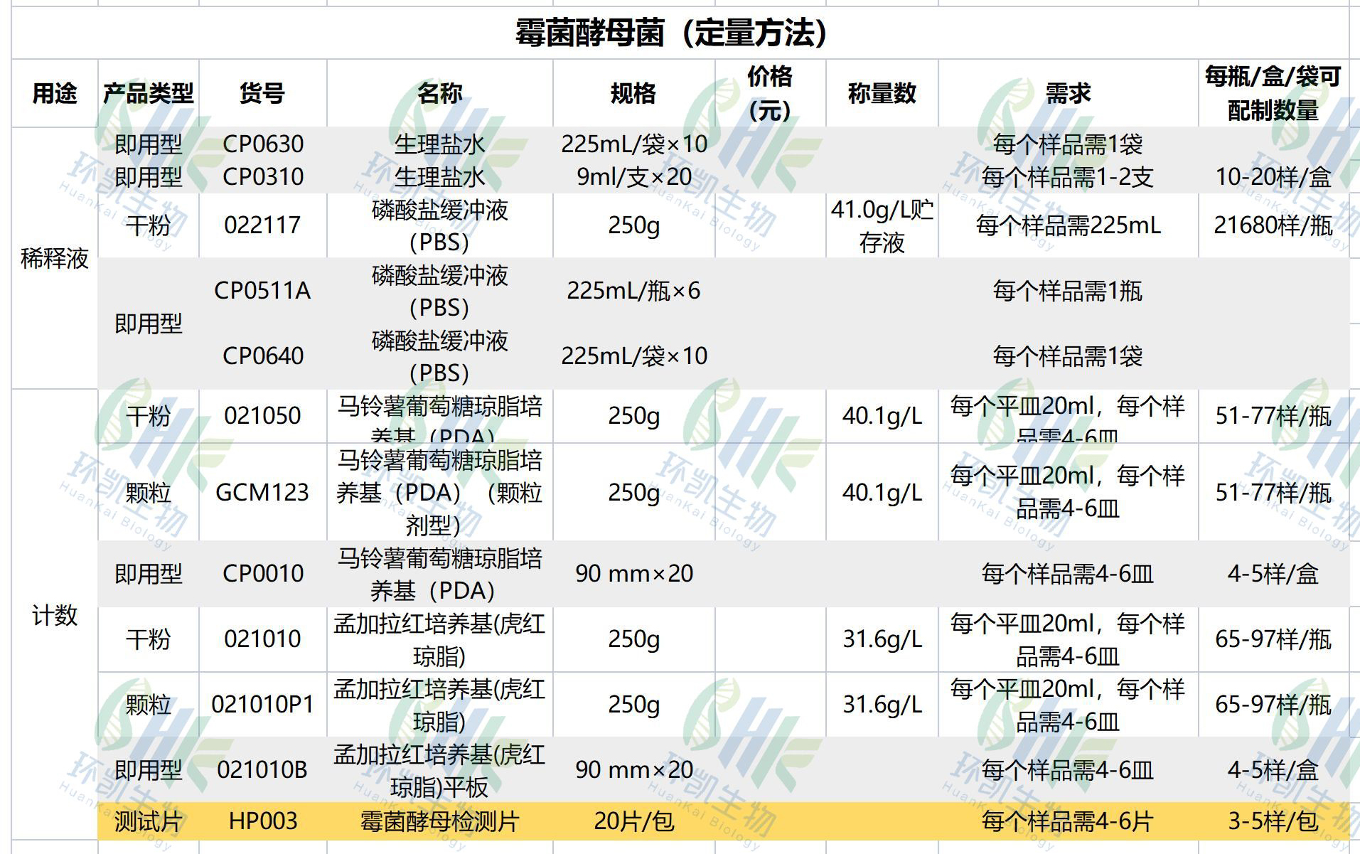 環(huán)凱為各個行業(yè)羅列了關(guān)于國家食品污染和有害因素監(jiān)測微生物項目中培養(yǎng)基用量核算表,以便大家根據(jù)自身項目快速檢索查找對之匹配合適的產(chǎn)品,大家可自行下載,然后根據(jù)需求在環(huán)凱微生物官網(wǎng)搜索貨號查看產(chǎn)品詳細資料!