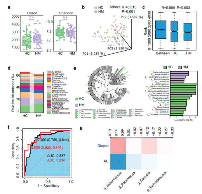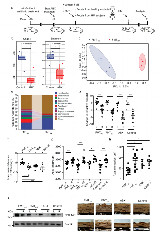 高度近視(HM)是全球失明的主要原因之一,高度近視的患者也在不斷增加。對于成人,高度近視通常指的是近視度數(shù)超過600度或眼軸長度超過26毫米。而對于兒童,特別是6歲以下的兒童,若近視度數(shù)超過400度,也已被認(rèn)為是高度近視。目前尚無有效干預(yù)措施。一個主要障礙在于它常被孤立地看作是一種純粹的眼部疾病,而忽視了潛在的系統(tǒng)性影響。近期證據(jù)表明存在腸道-眼軸的關(guān)系;然而,腸道微生物群在高度近視發(fā)病機制中的作用仍然基本未被探索。
