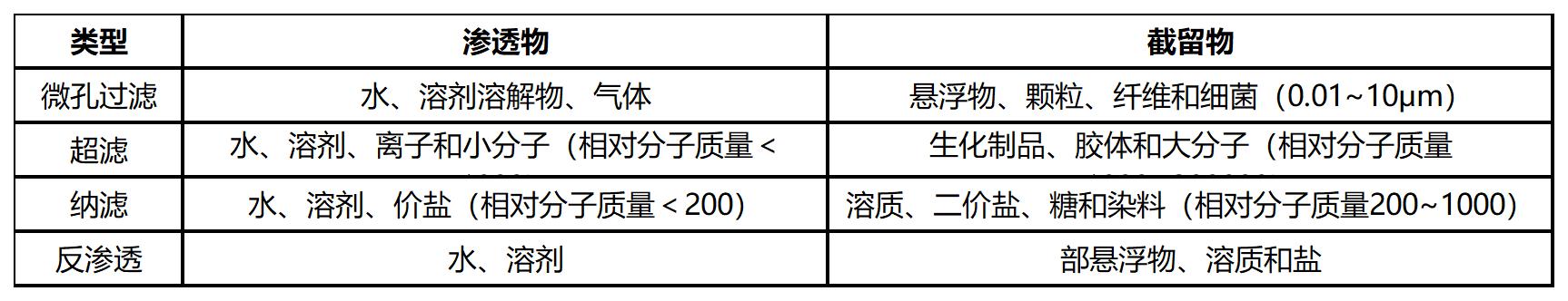 微孔分離過程是在流體壓力差的作用下,利用膜對被分離組分的尺寸選擇性,將膜孔能截留的微粒及大分子溶質(zhì)截留,而使模孔不能截留的粒子或小分子溶質(zhì)透過膜。