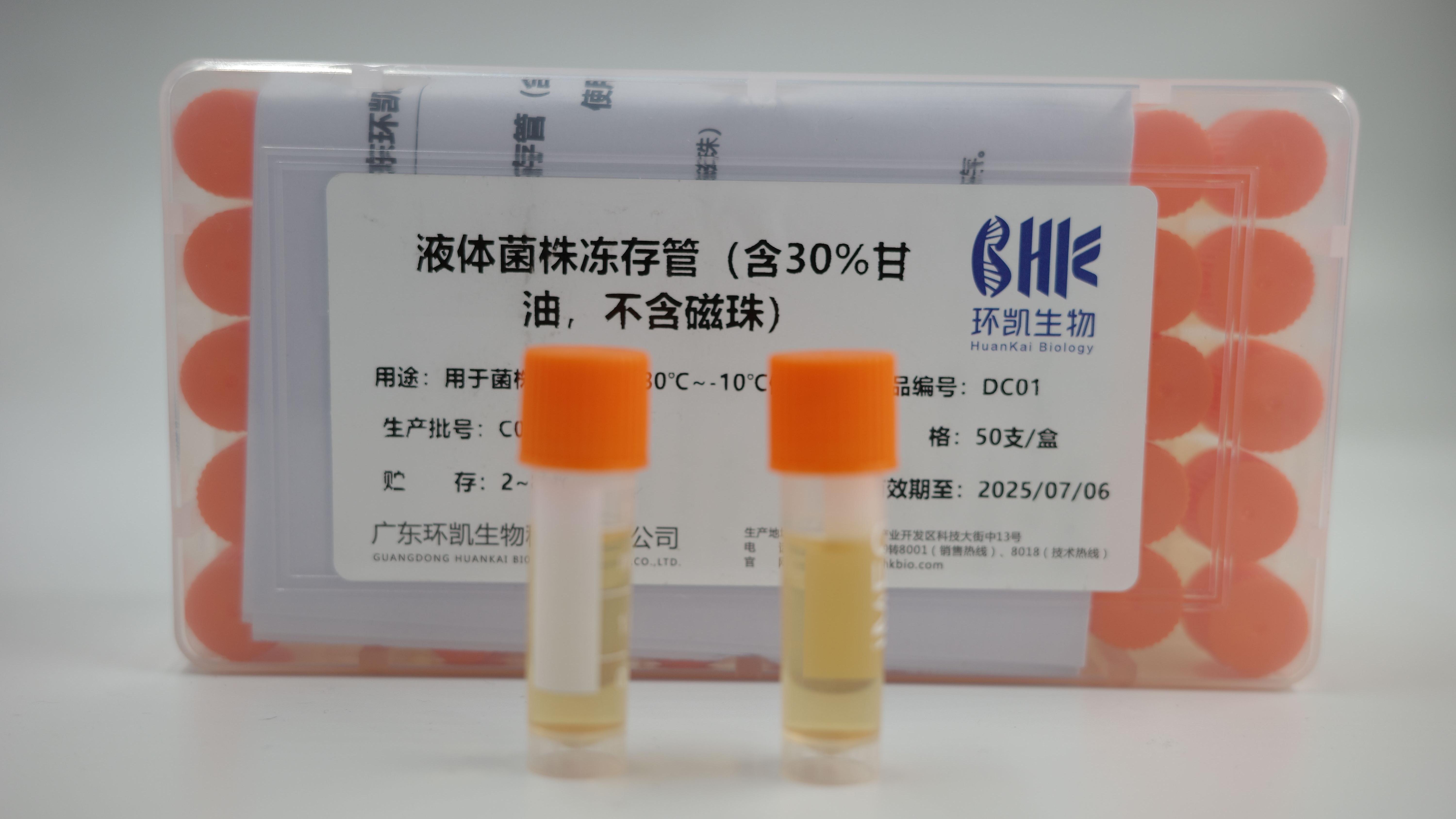 3、甘油濃度:甘油終濃度一般為10%~20%。由于甘油原液太粘稠,需要配制合適的甘油-水溶液,將菌懸液與甘油以1:1的體積比充分混勻后,分裝至提前滅菌好的保藏管中,-80℃(-70℃)冰箱保存。
