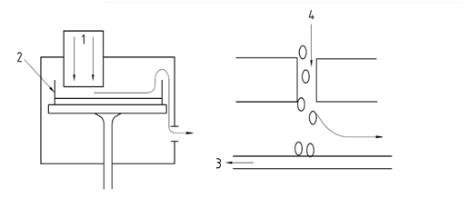 目前,壓縮空氣采樣器法主要參考的依據(jù)為《ISO 8573-7壓縮空氣標準》。其提及的狹縫式采樣器(即一種嵌入式空氣測試儀),空氣通過進氣口撞擊到平皿上,下落到平皿培養(yǎng)基,記錄瓊脂培養(yǎng)基暴露到壓縮空氣中的時間。(如下圖)