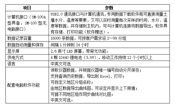 環(huán)凱SMT-100土壤墑情速測儀功能特點: